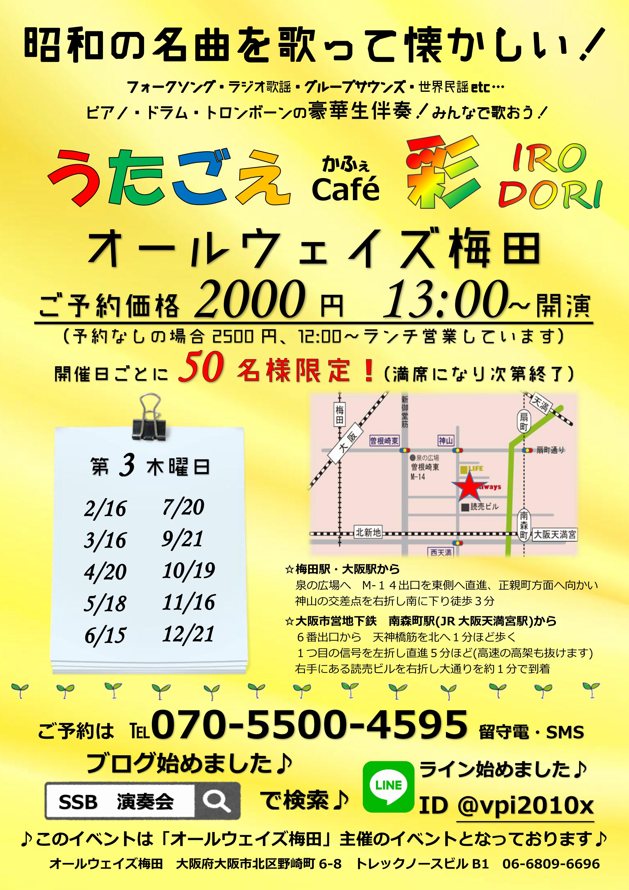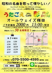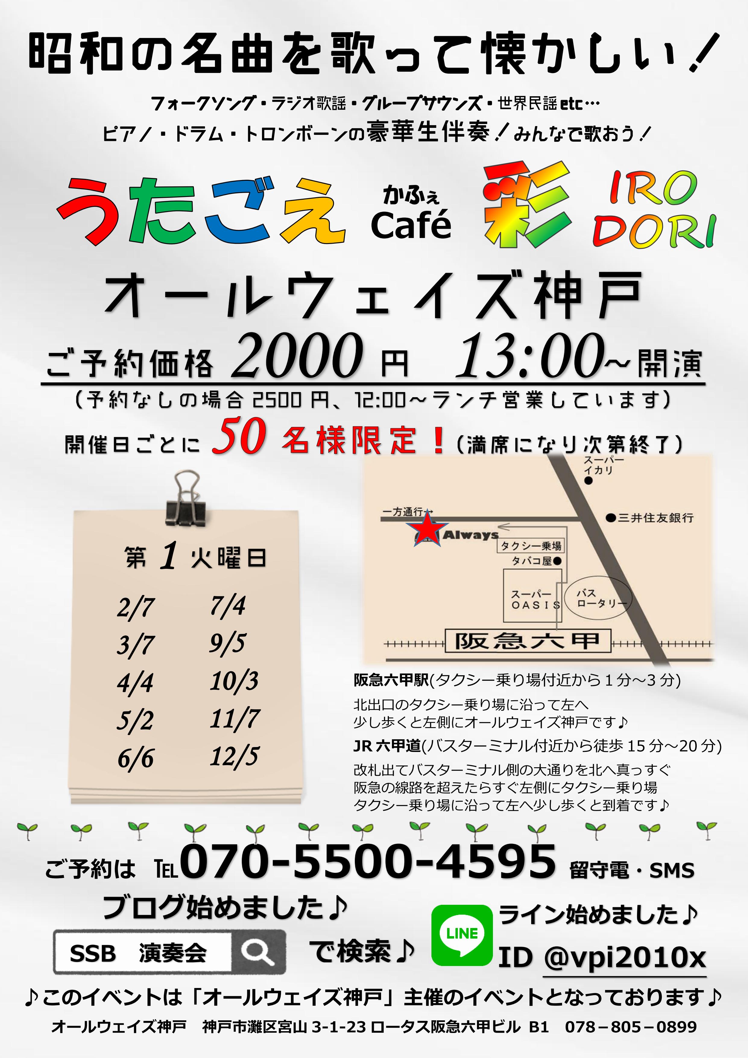 3月7日(火)お昼からうたごえ喫茶を阪急六甲駅降りてすぐのオールウェイズ神戸で営業中です♪