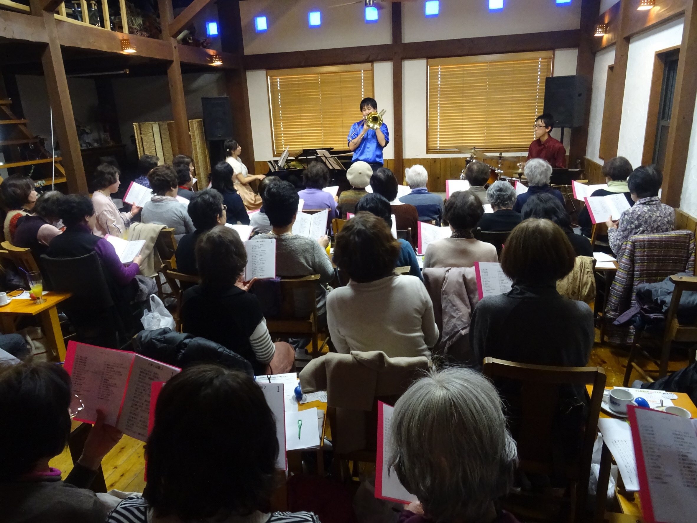 高校三年生カチューシャシクラメンのかほりここに幸ありetc...もちろんリクエストコーナーは健在♪お客様が歌いたい曲を書いて渡してもらうとリクエストにお応えするかも♪ジャズバーで若手ミュージシャンの生バンドで歌う♪
