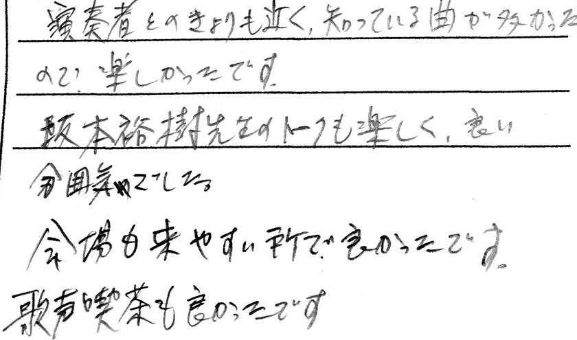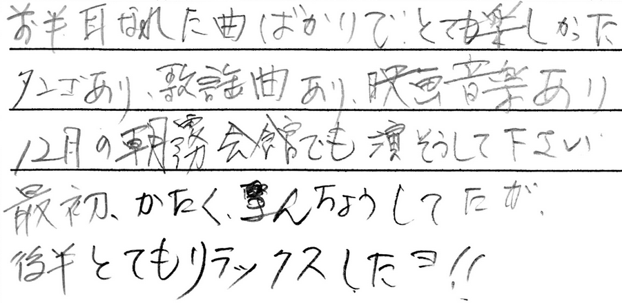 今日の音楽しみ会は多ジャンルの演奏でしたが楽しんでいただけましたでしょうか??